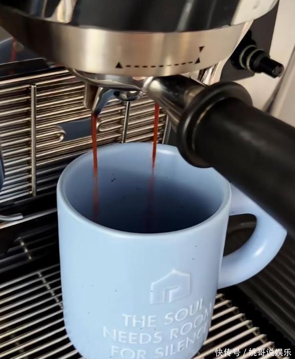 她家里面的客厅有一台看起来非常高级的咖啡机,外壳是哑光金属的,上面还有一排外文的标志,她也不太研究这些牌子,只知道很好用,旁边还摆着几个马克杯,看起来也没有什么特别的,比较简约。