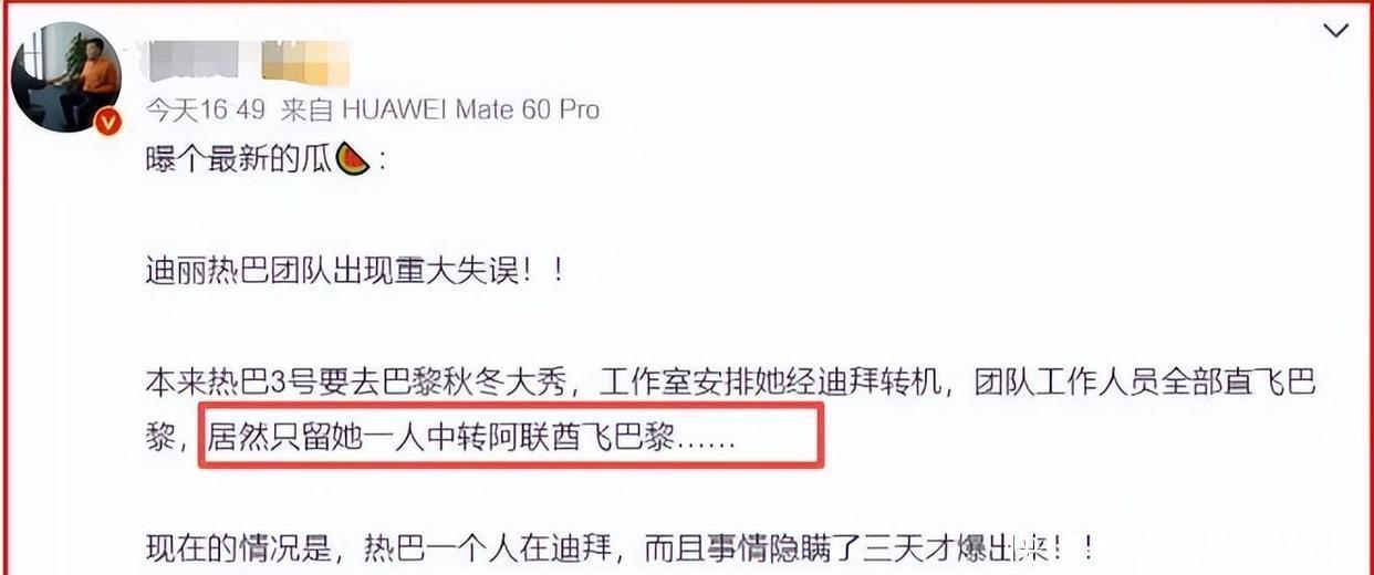 大多数人是拖家带口出去玩,热巴这趟是工作行程,要去巴黎看迪奥秋冬大秀。她是全球大使,以前这种场合几乎没缺过。