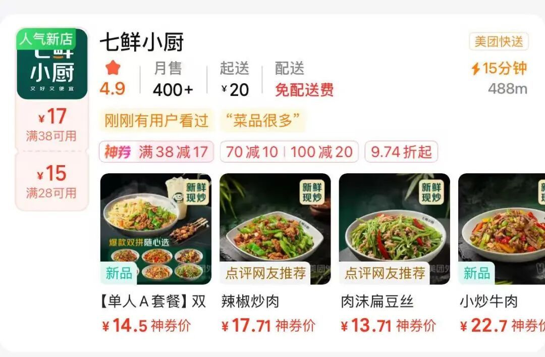 近期,京东旗下外卖品牌七鲜小厨在美团外卖、淘宝闪购等平台低调上线。